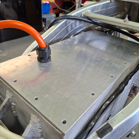 The negative output from the BMS will exit at the top front of the battery box. After considerable deliberation, it was decided that the positive cable will also exit from the top, but closer to the rear of the battery pack.