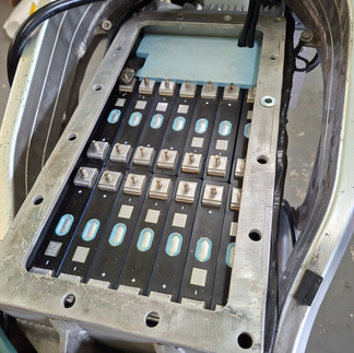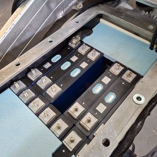 The Battery Management System (BMS) will be installed at the front of the battery compartment. I have attached the BMS to an HDPE board, which will serve both as a mount for the unit and to secure the bottom row of batteries in place.